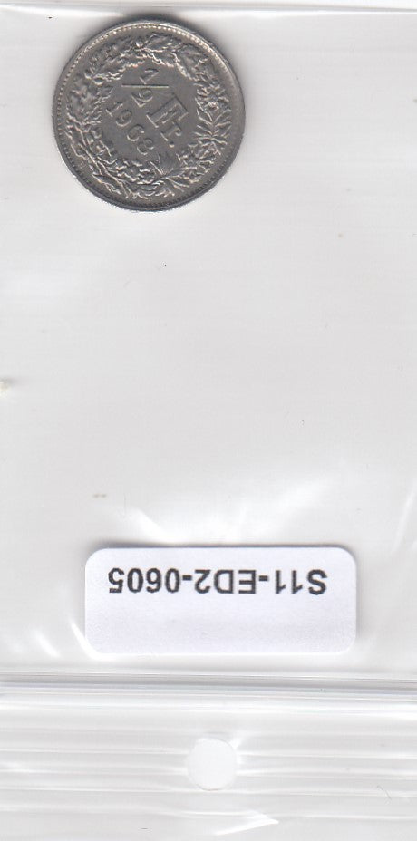 S11-ED2-0605 Switzerland 1/2 franc 1968 XF KM# 23a B