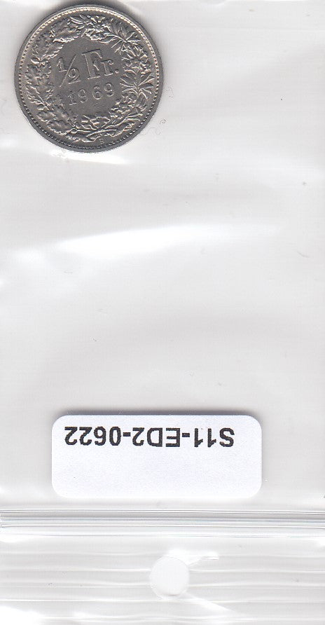 S11-ED2-0622 Switzerland 1/2 franc 1969 XF KM# 23a B