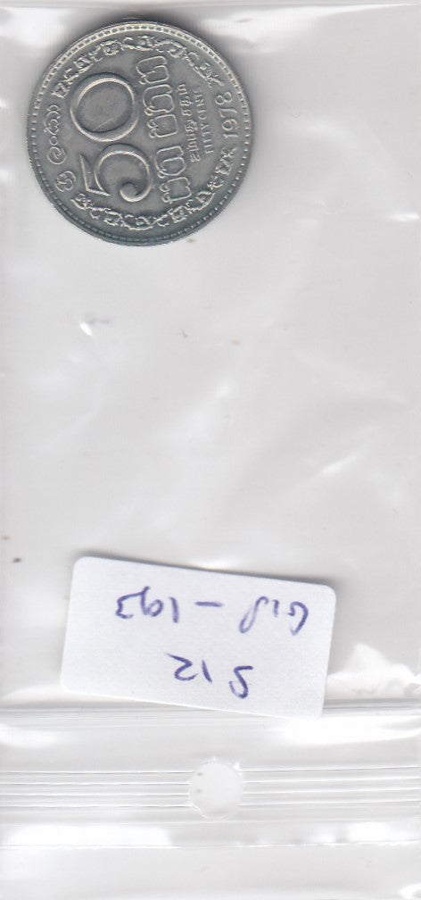 S12-G18-0193 Sri Lanka 50 cents 1978 VF/XF KM135.1