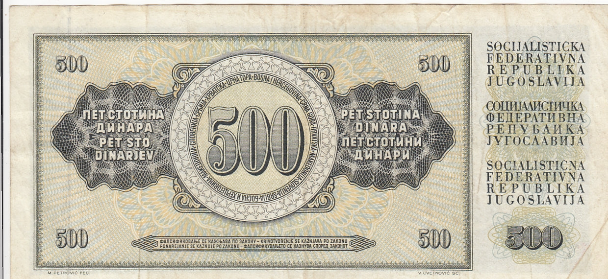 S19-BAN-0053 Yugoslavia 500 Dinara 1981 P84 XF/UNC