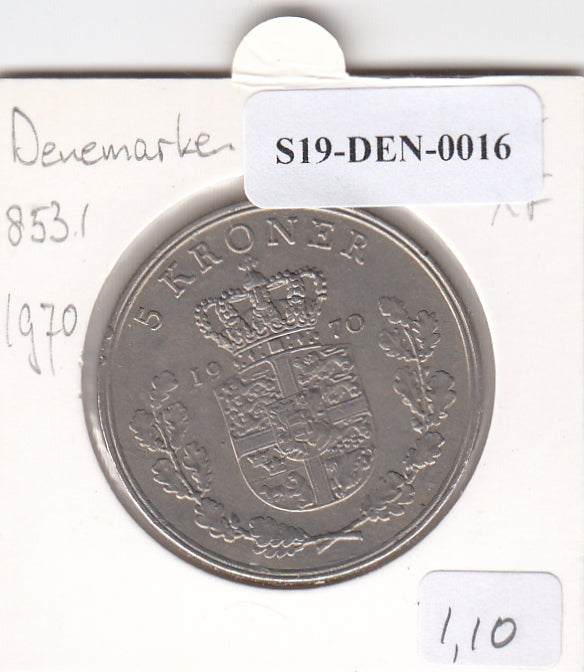 S19-DEN-0016 Denemarken 5 kroner 1970 KM# 853 XF