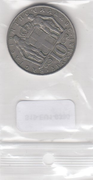 S19-EU1-0380 Greece 10 Drachmai 1968 KM96 VF
