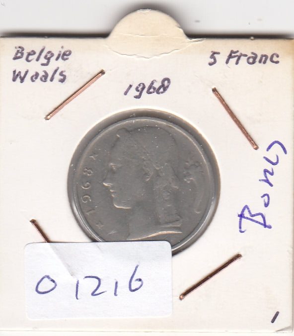 S19-MAS-01216 België 5 francs 1968 KM# 135 VF Legende in Nederlands - 'BELGIË'