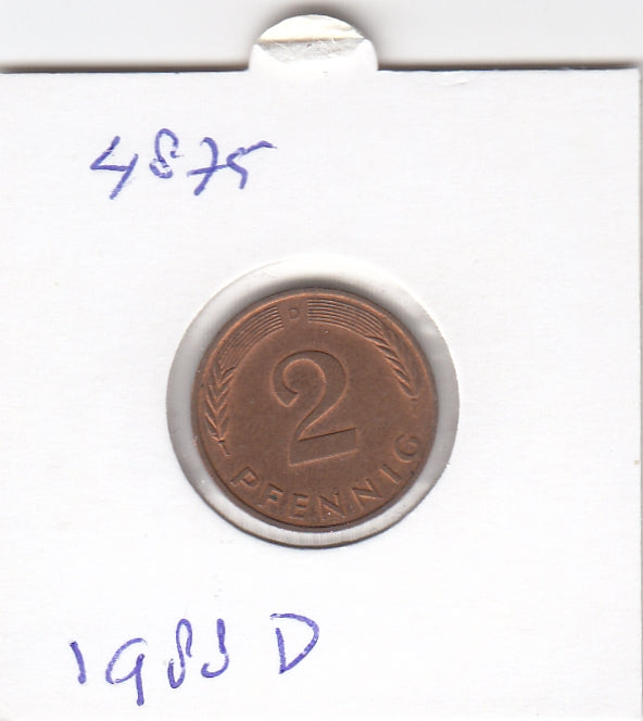 S19-MAS-04875 Duitsland 2 pfennig 1988 D KM# 106a XF