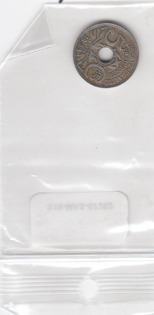 S19-MAS-07262 Frankrijk 5 centimes 1923 P KM# 875 VF New type: Hole at center