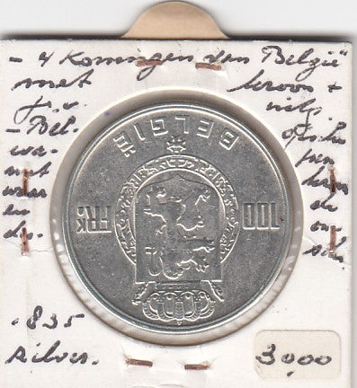 S2-G11-0263 Belgium 100 Francs XF 1951 KM139 Vaams ZIlver