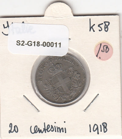 S2-G18-0011 Italy 20 Centesimi VF 1918 KM58 smooth