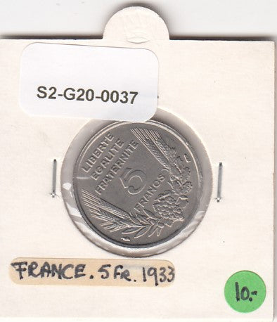 S2-G20-0037 France 5 Francs UNC 1933 KM887