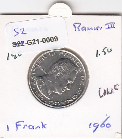S2-G21-0009 Monaco 1 Franc VF+ 1960 KM140