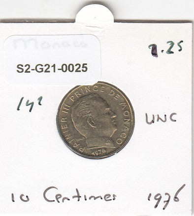 S2-G21-0025 Monaco 10 Centimes UNC 1976 KM142