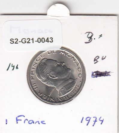 S2-G21-0043 Monaco 1 Franc UNC 1974 KM140