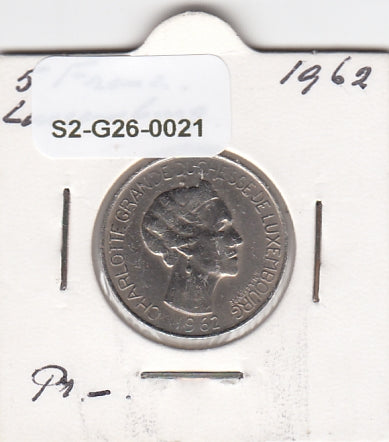 S2-G26-0021 Luxembourg 5 Franc VF 1962 KM51