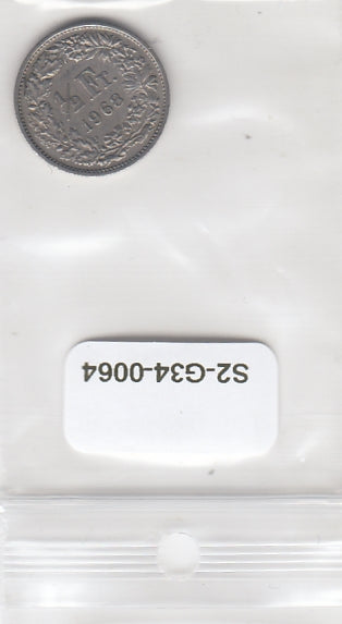 S2-G34-0064 Switzerland 1/2 franc VF 1968 KM23a