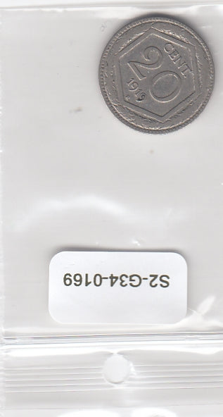S2-G34-0169 Italy 20 Centesimi VF 1919 KM58