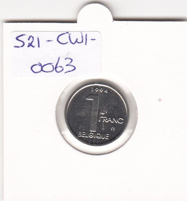 S21-CW1-0063 Belgium 1 Franc 1994 KM187 FDC Belgique