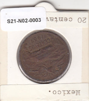 S21-N02-0003 Mexico 20 Centavos VF 1967 KM440