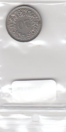 S21-N07-0153 Switzerland 20 Rappen VF 1959 KM29a