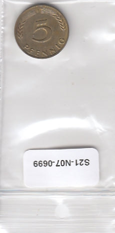 S21-N07-0699 Germany 5 Pfennig VF 1971 KM107 J