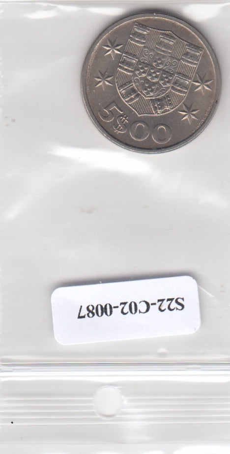 S22-C02-0087-M01 Portugal 5 escudos XF/UNC 1975 KM591