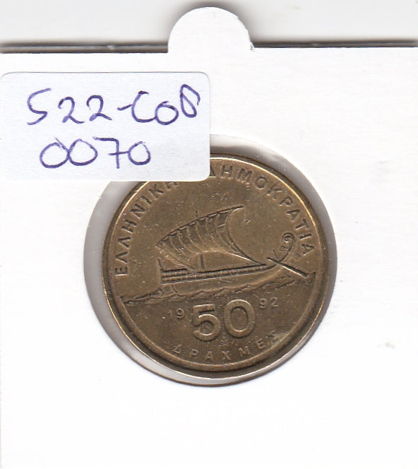 S22-C08-0070 Greece 50 Drachmes VF 1992 KM147