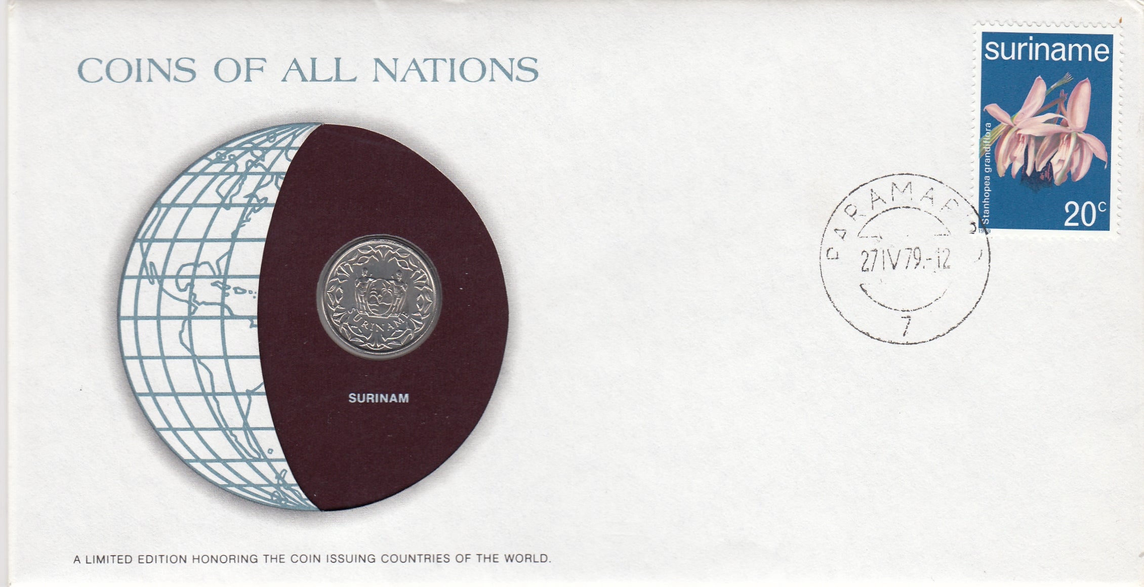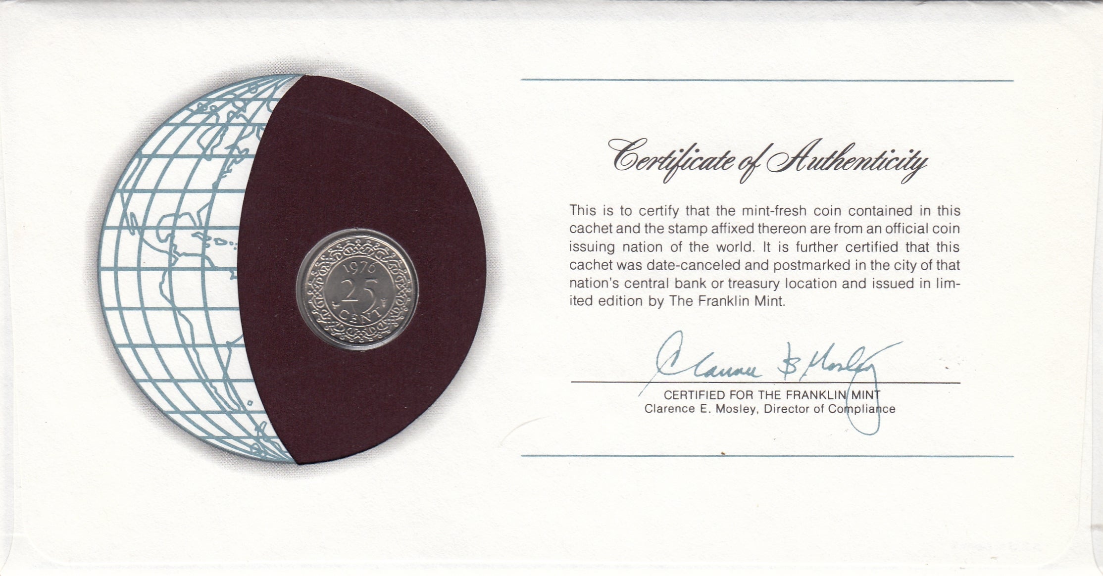 S22-G06-0005 Coins Of All Nations 25 cents 1976 KM14 Suriname