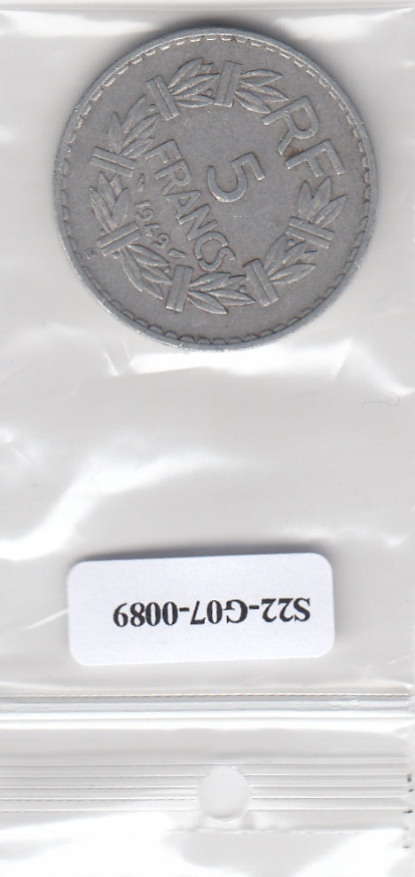 S22-G07-0089 France 5 franc VF 1949 KM886b B open 9