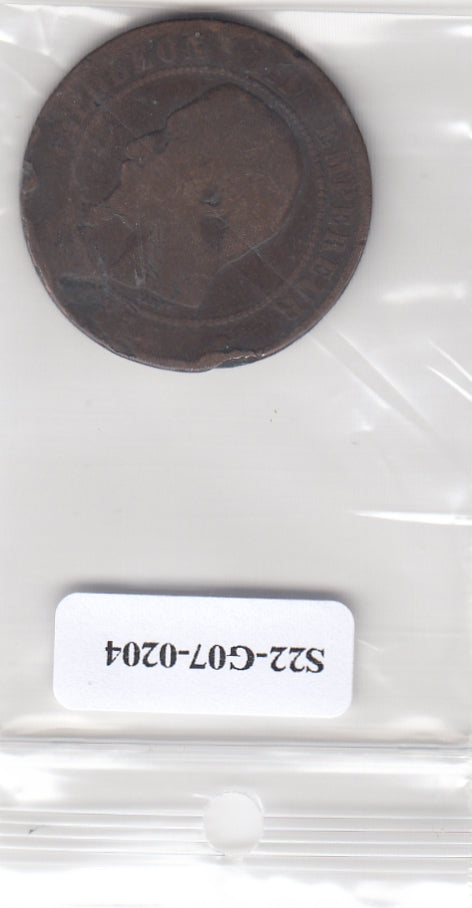 S22-G07-0204 France 10 centimes VG 1854 KM771 W