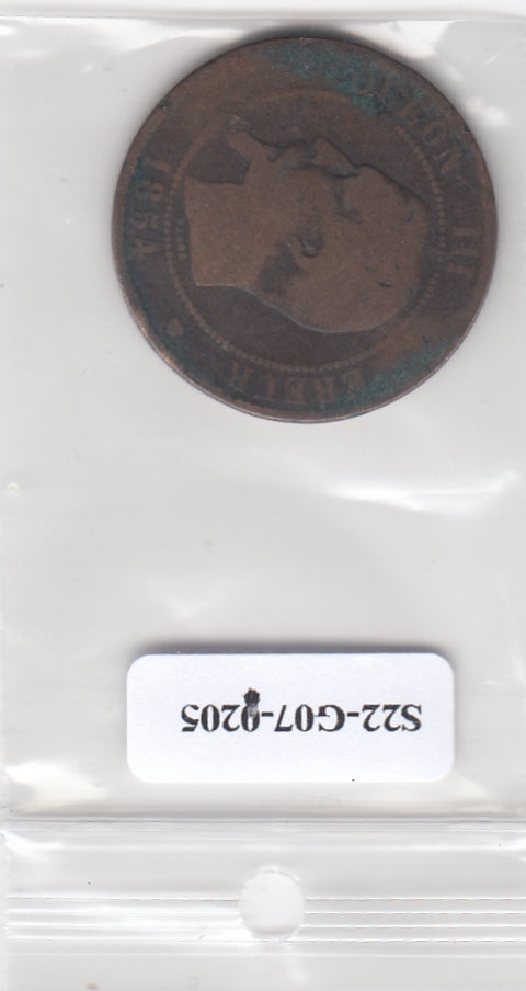 S22-G07-0205 France 10 centimes VG 1854 KM771 M