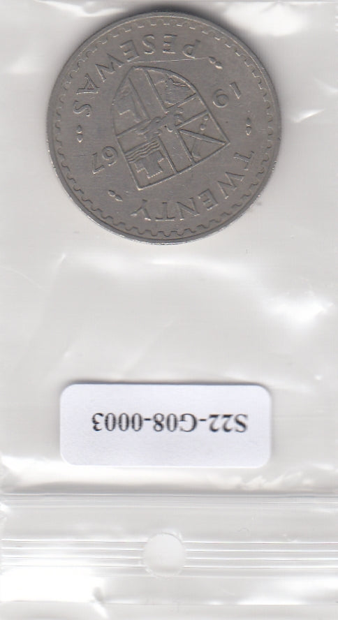 S22-G08-0003 Ghana 20 pesewa VF 1967 KM17