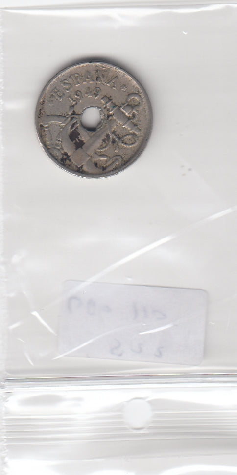 S22-GRO-0110 Spain 50 centimos 1949 FI/VF KM777 arronws up