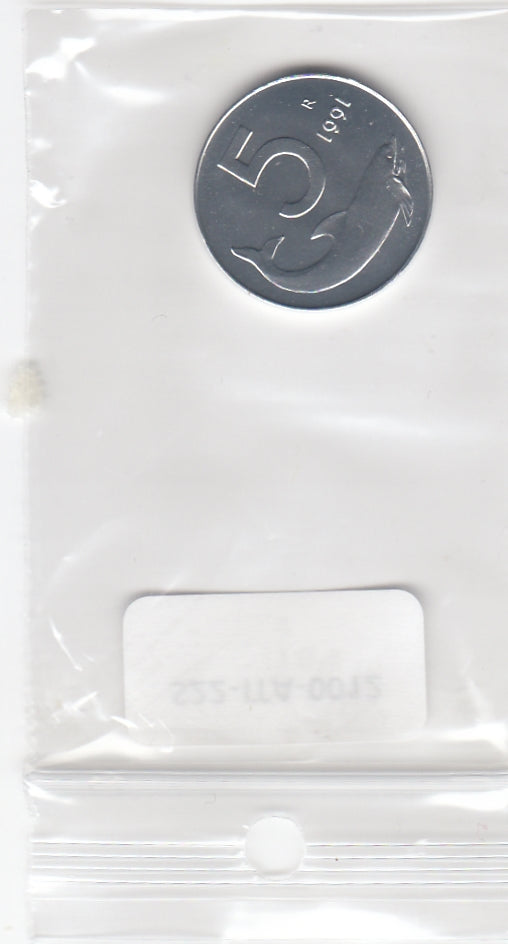 S22-ITA-0012-M43 Italy 5 lire UNC 1991 KM92