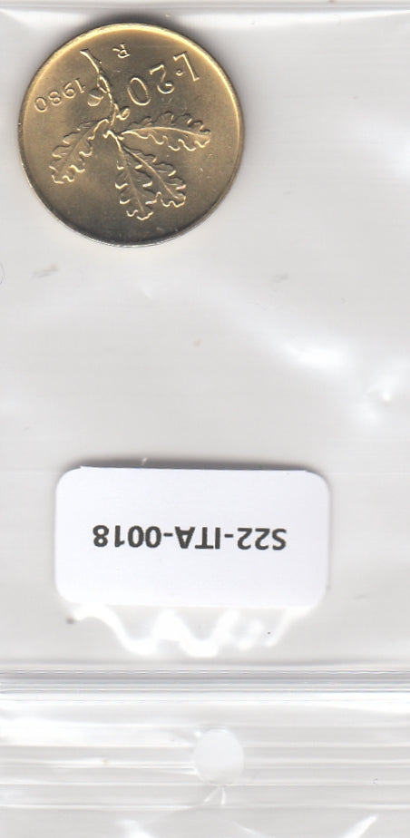 S22-ITA-0018-M43 Italy 20 lire FDC 1980 KM97