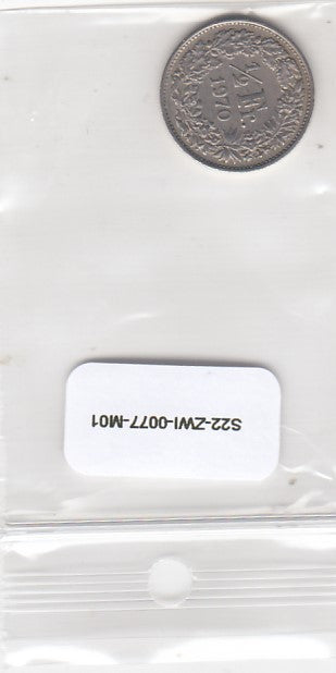 S22-ZWI-0077-M02 Switzerland 1/2 Franc VF 1970 KM23a
