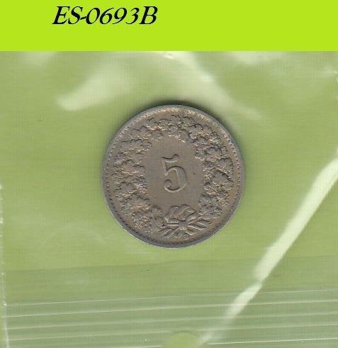 S6-HES-0693 ZWITSERLAND 5 RAPPEN 1955 VF KM26